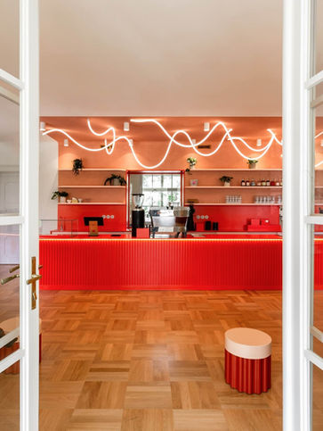 A serene café in a 1930s villa with a garden and wine bar